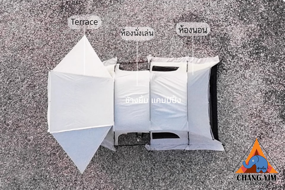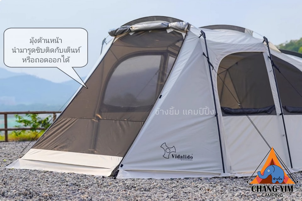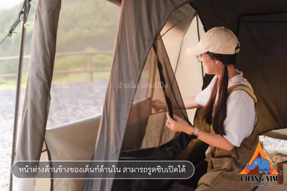 5. ประตูส่วนของ terrace สามารถนำมุ้งมารูดติดกับเต็นท์ได้ (ในชุดจะมีแถมมาให้) ช่วยป้องกันแมลงเข้าเต็นท์
